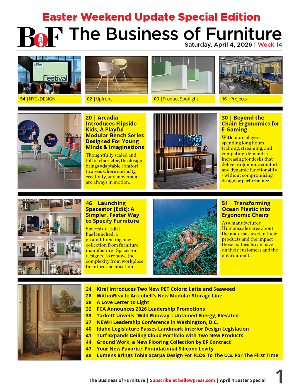The Business of Furnitureis the go-to source for keeping you informed about everything that is happening in the industry. You Asked and We Listened: Now published Friday evenings, BoF contains a complete review of all the latest and breaking industry news for the week, special feature editorials, along with the latest product introductions and industry events - keeping you informed of all the industry happenings. From trends that affect your bottom line, to new products, to stories that will help you run a better, more informed company.