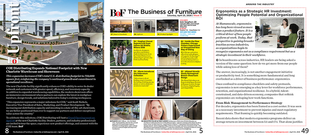 Focused exclusively on the contract furnishing industry, a singular source of strategic and practical information on selecting, deploying and managing interior furnishings.