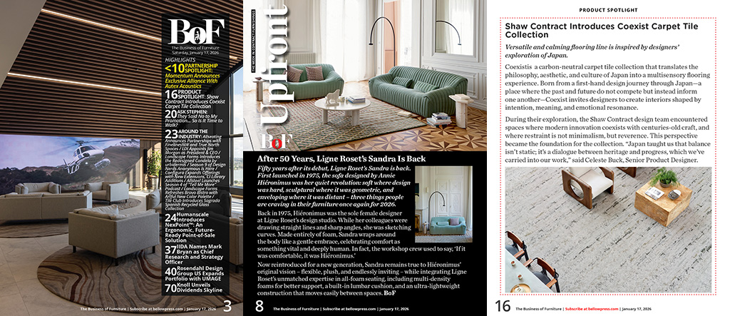 New publications about predicting change, not just watching it / Deb Bailey: Take nothing for granted / Sales' love-hate relationship with technology / Finding Talent Requires Strategy / Stephen Says / Ten "S" (teps) Toward the "OotF" / Losing Control of Your Brand / Stop Poaching my Employees! / Develop Your Most Important Asset: Your People / Ergonomics Faces Future With More Handhelds, Fewer Desks / Sales vs Marketing? The Internet has Changed that Relationship Forever / JRB Studio completes the design circle / In2Design's experience benefits growing customer base / West Elm Workspace takes industry by storm / The future of coworking / National learns from its own new HQ experience / DWR's dynamic duo:Edelman & McPhee / FluidStance is on the Level (and hopes you are too) / Tech startup PointDrive picks furniture close to home / Folkert Goes Big, Goes Bold / Industry Can Learn From The Coworking Movement / AV can add to a Dealer's Bottom Line / Where's Your ShowroomR? Everywhere / Group Dekko: Supplier to Budding Tech Company / Emory University connects with Backbone / HDR Chicago / IDEO has joined the creative kyu collective, a unit of Tokyo-based Hakuhodo DY Holdings / Studio Wise Uses Expertise in Specials to Create New Lines / Reflections on Groupe Lacasse turning 60 from its CEO / MOI Moves to New D.C. NoMa Showroom / idesk, Cherryman make a Splash on Silicon Beach in L.A. / Stir unveils new Product / The Backlash Against Collaboration / Melissa Price Helps Detroit Pop / Artopex showrooms / PWV Takes Carpets to New (Corporate) Levels / Dauphin Retools for the North American Market / History is Important but OM is Ready for the Next 30 Years /