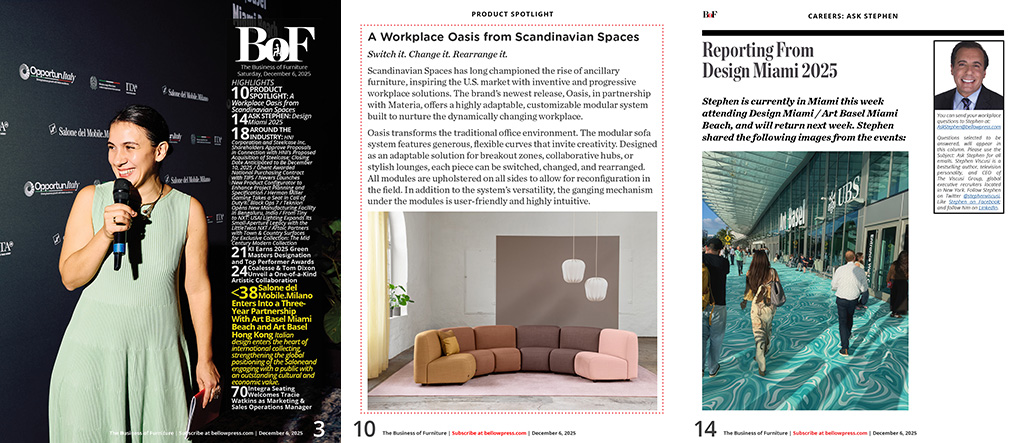 Focused exclusively on the contract furnishing industry, a singular source of strategic and practical information on selecting, deploying and managing interior furnishings.
